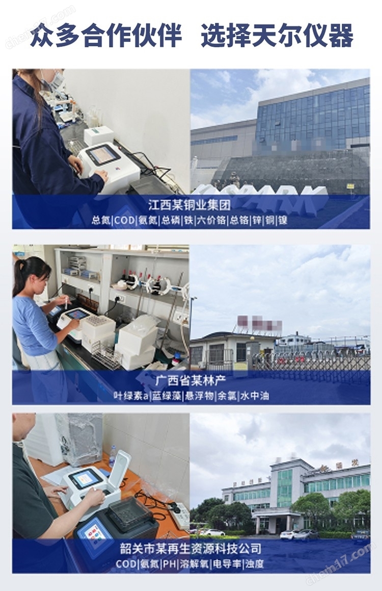 11.可快速檢測水質(zhì)中COD、氨氮、總磷、總氮、濁度、色度、重金屬、pH、溶解氧、電導率、ORP、葉綠素、TDS、水中油等百種項目,項目可自由組合,實現(xiàn)定制化服務(wù);